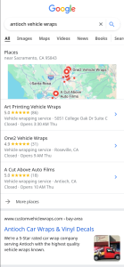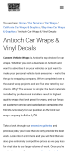 Exemplar: Custom Vehicle Wraps’ Antioch Vehicle Wraps service page results in first organic result for Antioch Vehicle Wraps.